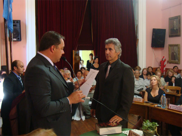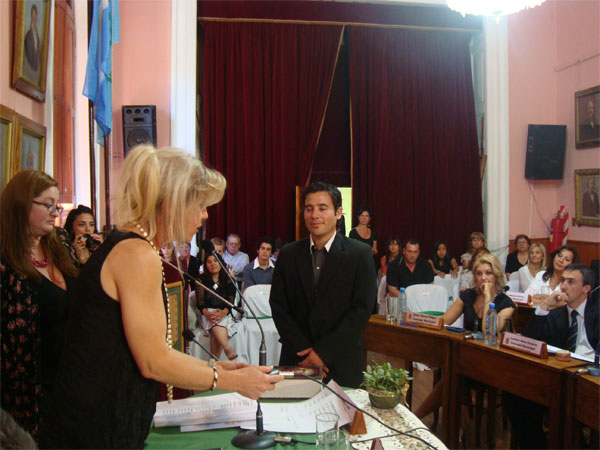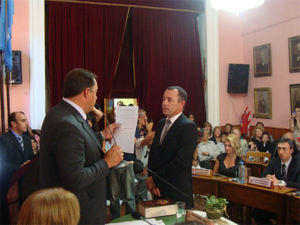 Se continúo con la lectura de la Resolución de la Junta Electoral y Decreto de Presidencia, convocatoria, para seguidamente tomar juramento a los concejales electos. En primer término, juro por el Bloque Frente Justicialista para la Victoria: Jabier Garcés, Bari Gerardo, Yanina Laval, Hollmann Rubén, Cabeza Alfredo. Debido a las licencias solicitadas por los Concejales Bari Gerardo y Yanina Laval aprobadas por el Cuerpo de ediles, asumieron en su reemplazo Teruel Rosana y Saldaña Marcos. Por el Bloque Unión Para el Desarrollo Social: Cedrés Néstor, y Devia Mónica.