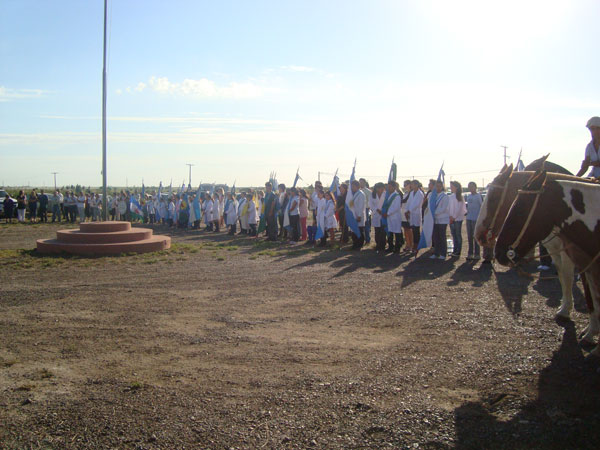 El acto que se desarrolló con un marco de público muy importante, participaron autoridades de la Municipalidad de Viedma (Prov, de Rìo Negro), abanderados de distintas Escuelas de Patagones, la banda de música de los Bomberos Voluntarios, Policía, Prefectura, Agrupación Gaucha Cata Villarino, Escuela Municipal de Danzas Cata Villarino.-